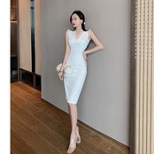 フランスの芸術的なスカートライトラグジュアリー気質セレブデザインニッチVネックレースシックな見事なドレス女性の夏 サマー 夏物 yingd11908909020