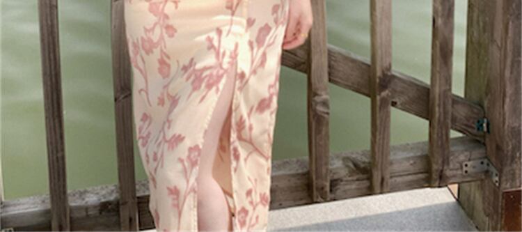 チャイナドレスの夏の高級感のある優しいスタイルのティーブレイクベルフラワースカートシックでユニークな見事な改良されたチャイナドレスの女性の夏 サマー 夏物 フラワーデザイン yingd86672468168