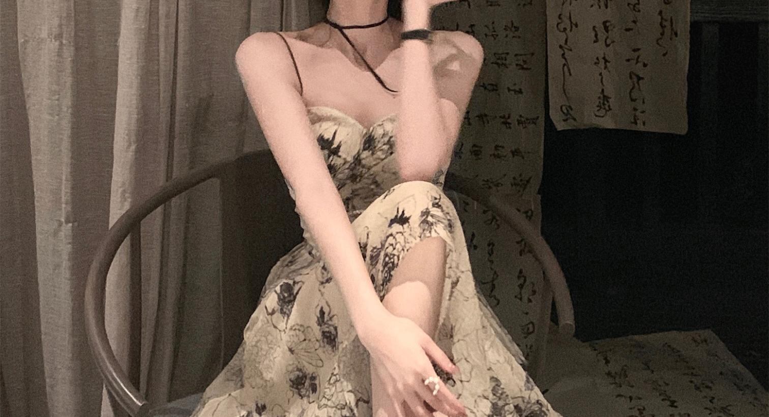 フランスのレトロなティーブレイクベルフラワープリントサスペンダードレスデザインニッチハイエンドロイヤルシスターサスペンダードレス女性の夏 サマー 夏物 フラワーデザイン yingd44473170561
