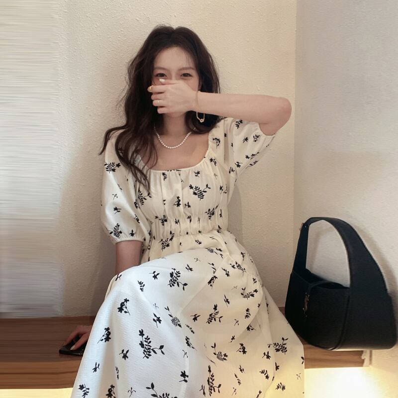 フランス初恋ティーブレイクミルクスウィートロングスカートウエストスリム気質優しい風ハイエンドフローラルドレス女性夏 大人ガーリー キュート カジュアル サマー 夏物 花柄 yingd41195417044