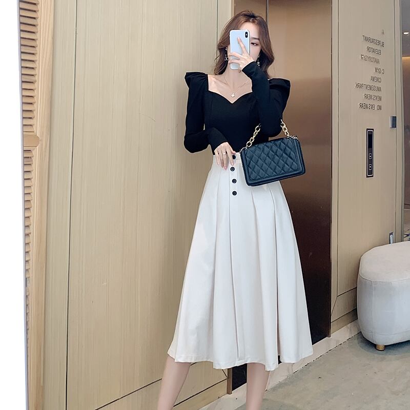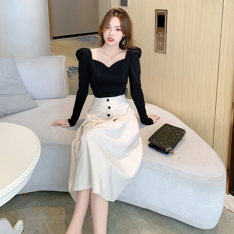 -高品質のロイヤルシスターライトおなじみのスタイルのスーツスカート女性の2022年春の新しいパフスリーブトップスカートツーピースセット スプリング 春物 yingd44403010775