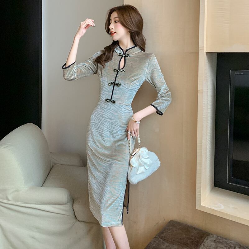 春の婦人服2022年新しいフランスのレトロなロイヤルシスターライトおなじみのスタイルセクシーなスプリット改良されたチャイナドレス スプリング 春物 yingd23269555316