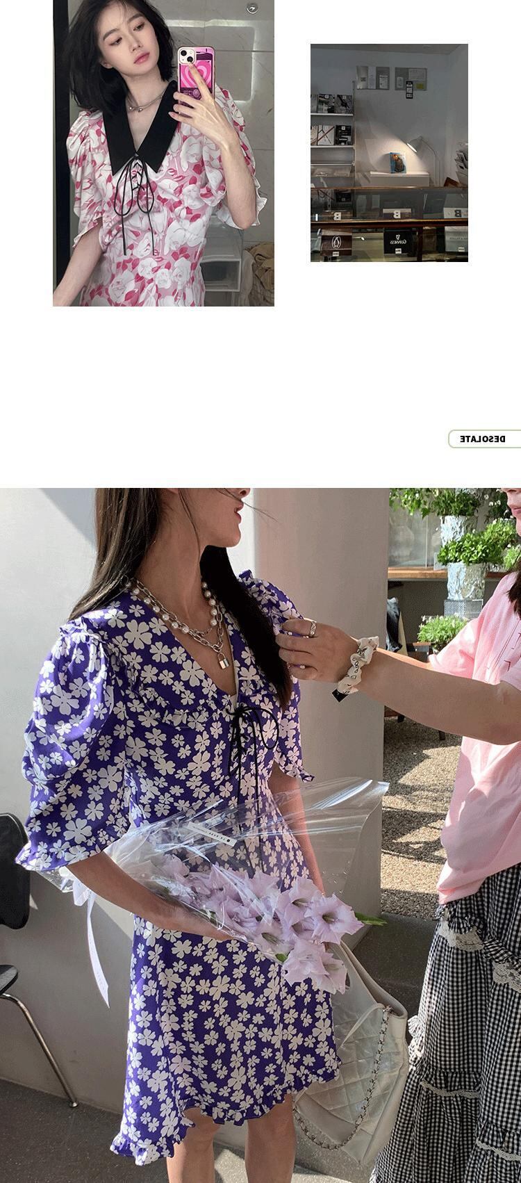 ティーブレイク、プリンセスドレス、スーパーフェアリー、穏やかな風、ウエスト、薄い気質、パフスリーブ、フローラルドレス、夏のハイエンドセンス サマー 夏物 花柄 yingd63409048392