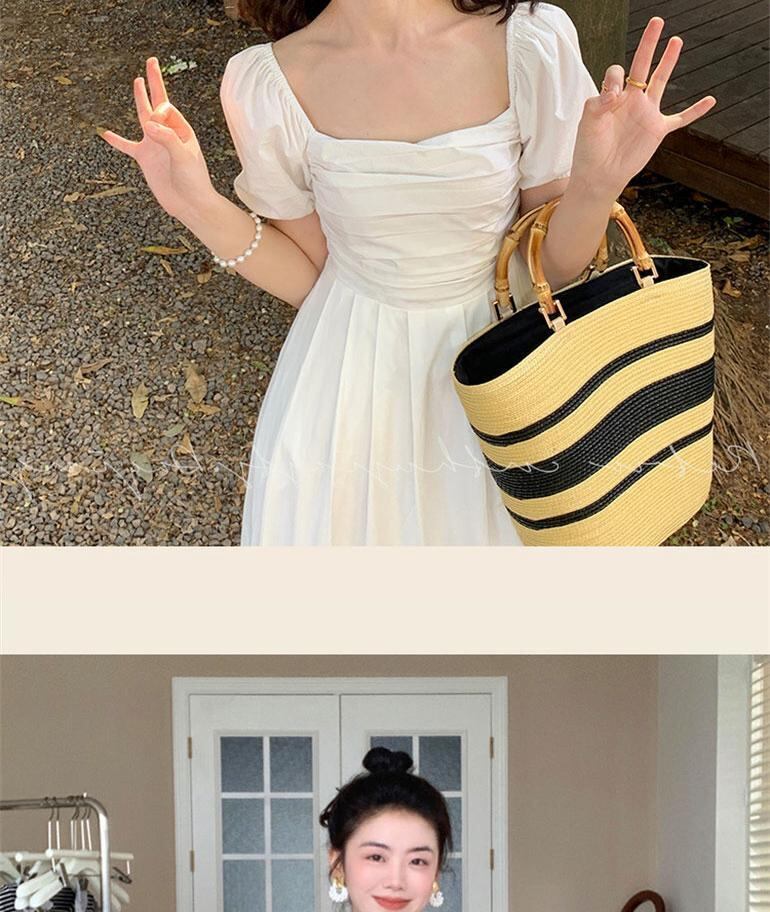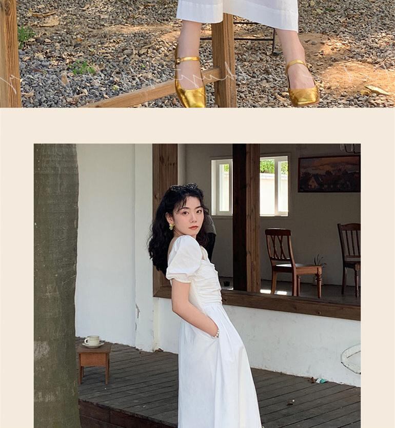 フランスの優しい風初恋ミルクスカート夏ロングスカートウエストスリム気質バブルスリーブ白いドレス女性 ホワイト サマー 夏物 yingd52388190872