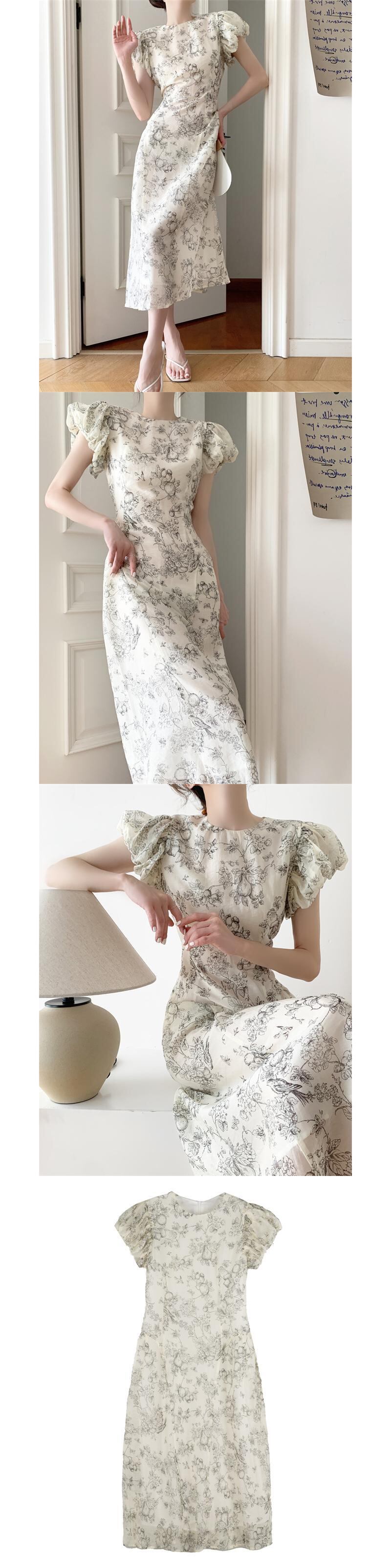見事なスリムスカート、ハイエンドセンス、優しいティーブレイク、ベルフラワーフローラルロングスカート、スモールフライングスリーブドレス、気質、セレブスタイル 花柄 フラワーデザイン yingd32942066648