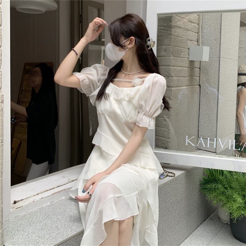 優しいヘップバーンスタイルは塩辛くて甘い白いロングドレスは薄くてハイサマーハイエンドの妖精のような見事なドレスの女性です ホワイト 大人ガーリー スウィート キュート カジュアル 夏物 yingd16677934508