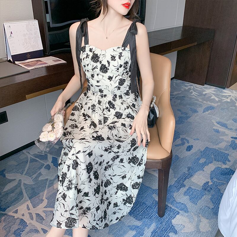 フランスの優しいヴェルサイユスカートウエストスリム気質女神ファンローズフローラルサスペンダードレス女性の夏 サマー 夏物 花柄 yingd4789683540
