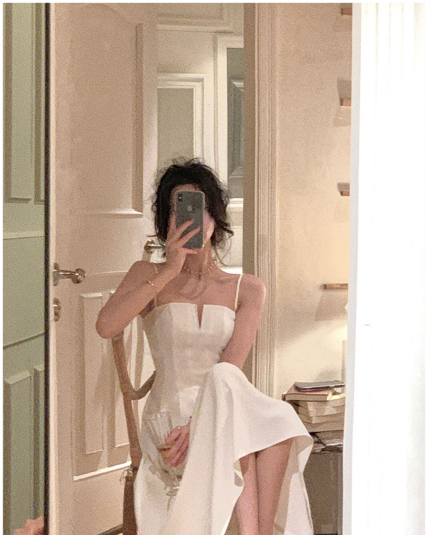シックでユニークな見事なサスペンダードレス2022新しい女性のハイエンド香港フレーバーレトロシックなサスペンダードレス夏 サマー 夏物 yingd55871036432