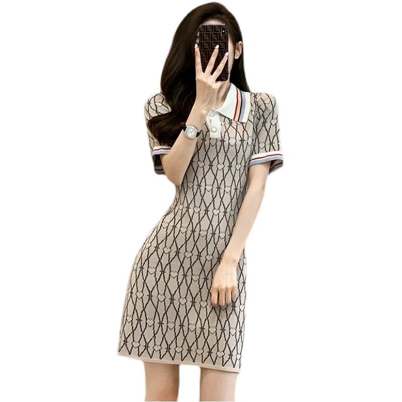 シックでユニークな見事なスカートの女性の夏のハイエンドウエストスリム気質小さなポロニットドレス サマー 夏物 スカート yingd73331072155