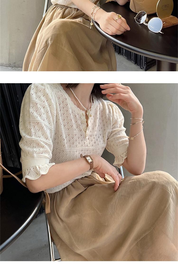 フランスの優しいスタイルのハイエンド中空薄セーター女性の2022年夏のドレス新しいネット赤気質プルオーバートップ レッド サマー 夏物 yingd43124268191