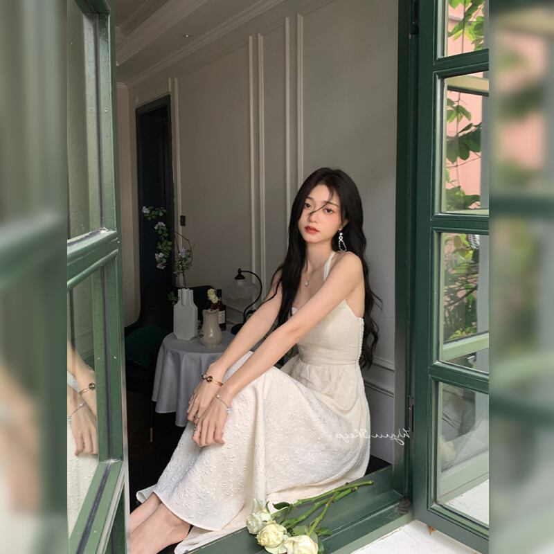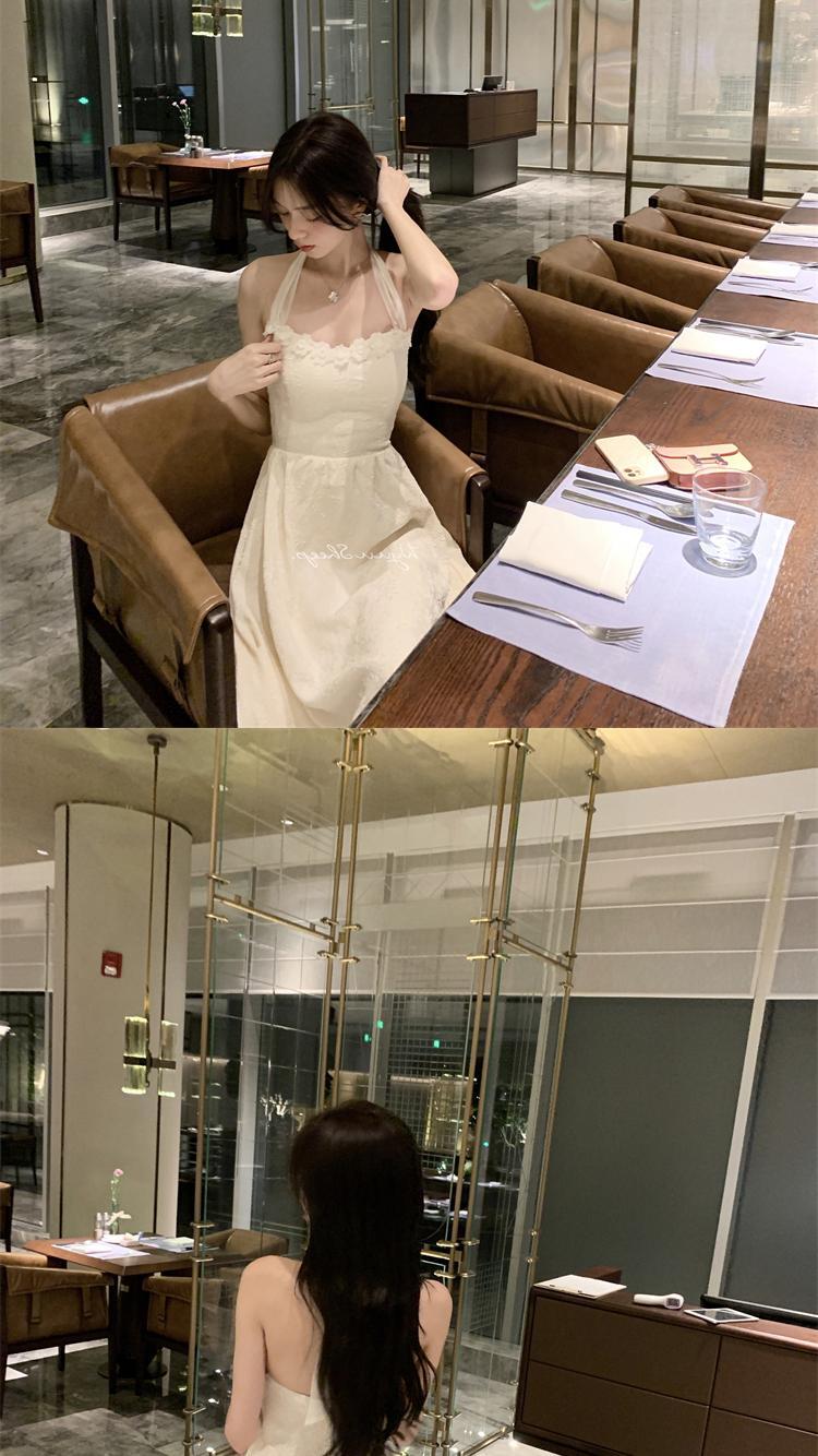 シックでユニークな見事なホルターネックテクスチャドレス気質セレブスタイルニッチデザインハイエンドロングスカート女性夏 サマー 夏物 yingd31124670941