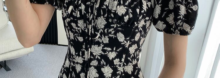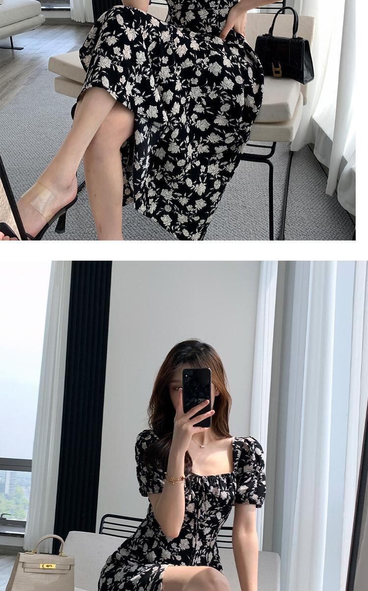 フランスの優しいスタイルのティーブレイクベルフラワーフローラルドレスハイエンドレトロスクエアネックパフスリーブフローラルドレス女性の夏 サマー 夏物 花柄 フラワーデザイン スクウェア yingd61469763101