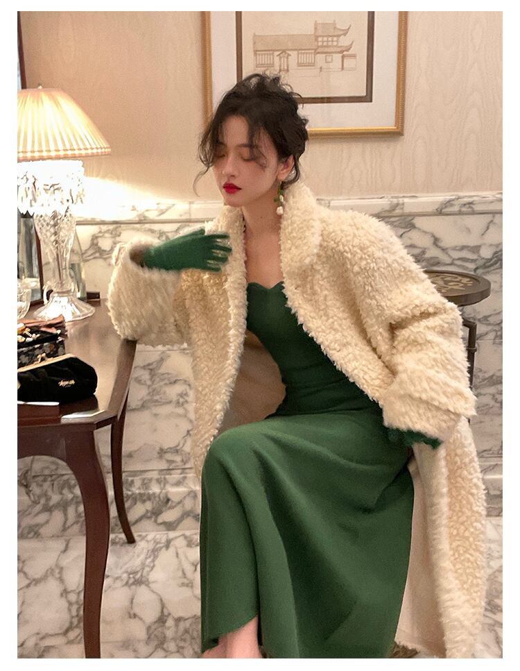 コートと膝丈の長いセータースカート付き ロング yingd54711834796