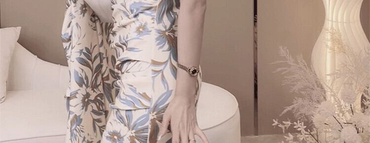 フランスのレトロなスクエアネックフローラルドレス2022新しい女性のウエストと薄い気質の女神ファンのハイエンドドレス 花柄 スクウェア yingd14145446435