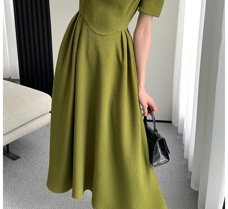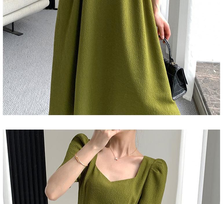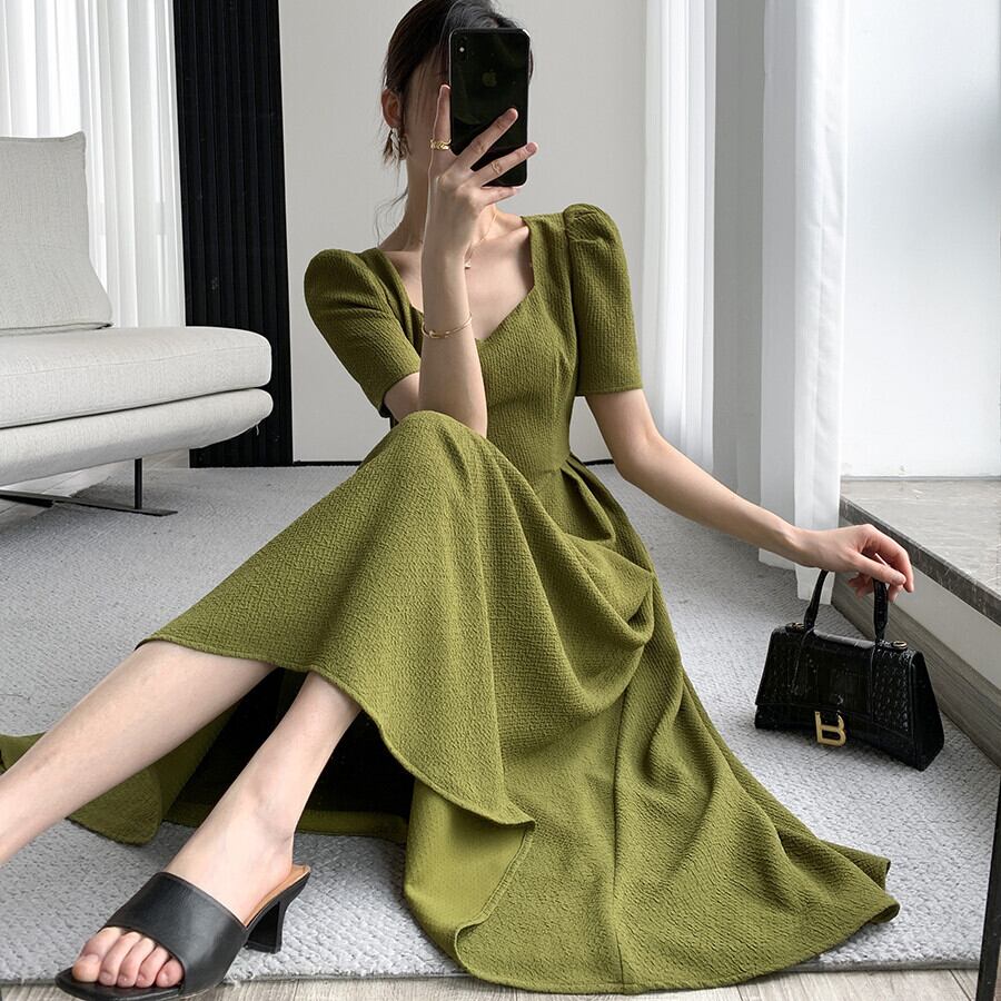 フランスのレトロなスクエアネックのロングドレスは薄くて背が高く、夏のハイエンド、ウエスト、薄い、気質、シック、見事なドレス、女性 サマー 夏物 スクウェア yingd56207144420