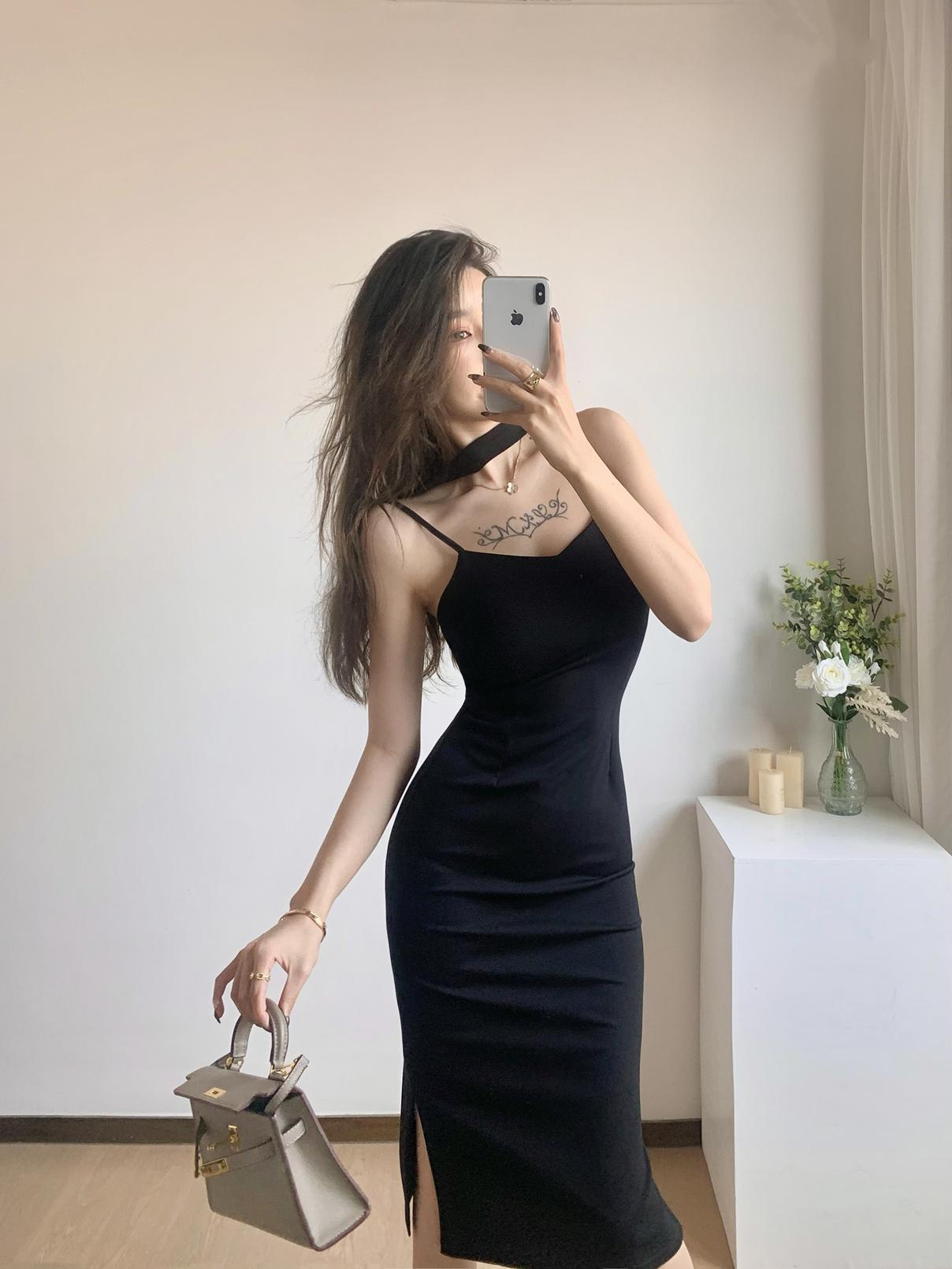 冷風ハイエンドサスペンダードレススリムフィットと薄気質ゆうじえライトおなじみスタイルホルターサスペンダードレス女性夏 サマー 夏物 yingd74081230664
