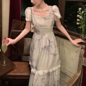レトロなライトカントリースタイルのプリントロングスカートは薄くて背が高く、夏のシックで見事なハイエンドの水墨画のドレス、夏の女性 サマー 夏物 yingd37015970024