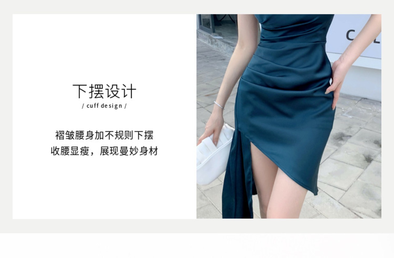 コールドでハイエンドの見事なサスペンダードレス女性の夏のシックなウエストは不規則なスプリットサスペンダースカートを折ります サマー 夏物 yingd43072653960