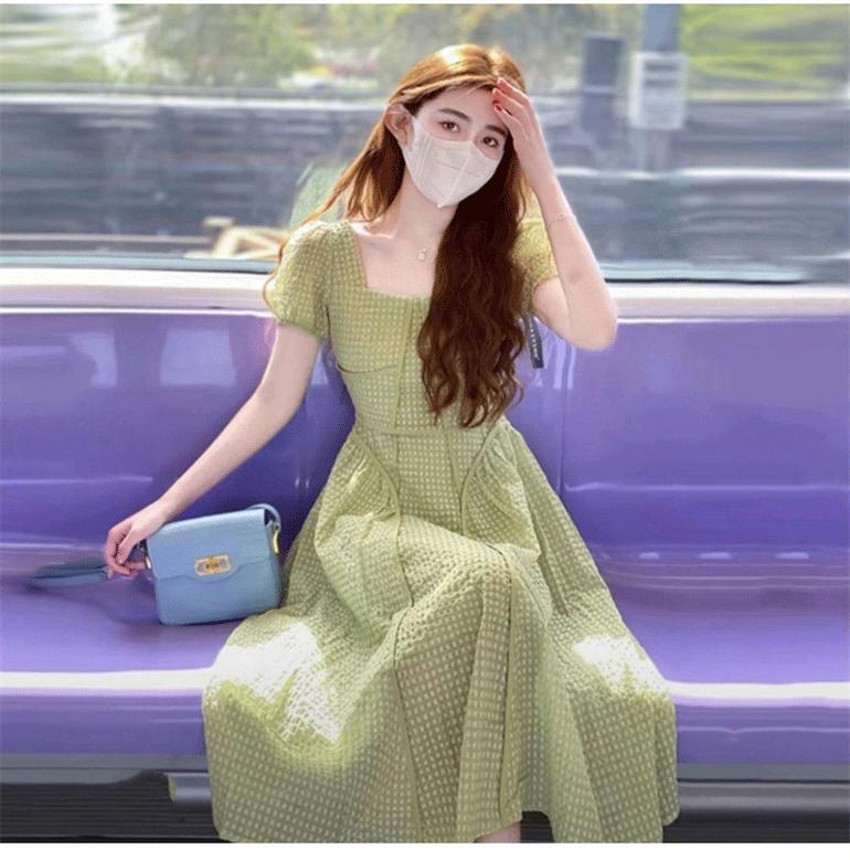 フランスのティーブレイク美しいドレス2022新しいニッチなデザインのハイエンドのパフスリーブロングスカートは薄くて背の高い夏です サマー 夏物 yingd98782135891