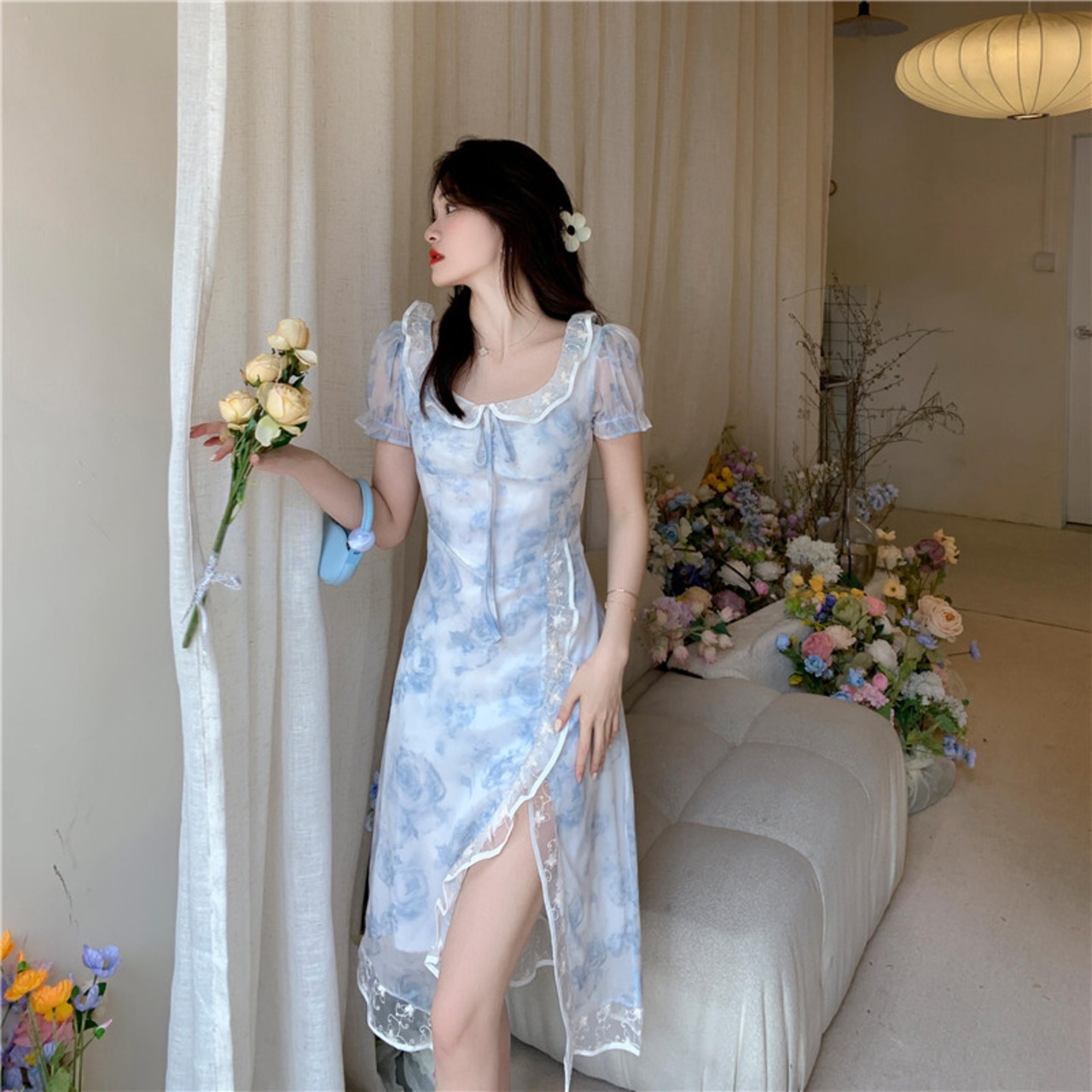 フランスのティーブレイクは美しく、シックで、甘くてスパイシーで、とても妖精のドレス、気質、有名人、新しいウエスト、スプリットフローラルロングスカートです 大人ガーリー スウィート キュート カジュアル 花柄 yingd16860122209