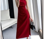 シックで見事な赤いサスペンダードレス2022新しい女性のウエストロングスカート洋ナシ形のフィギュアは薄くて背の高い夏です レッド サマー 夏物 yingd346839779
