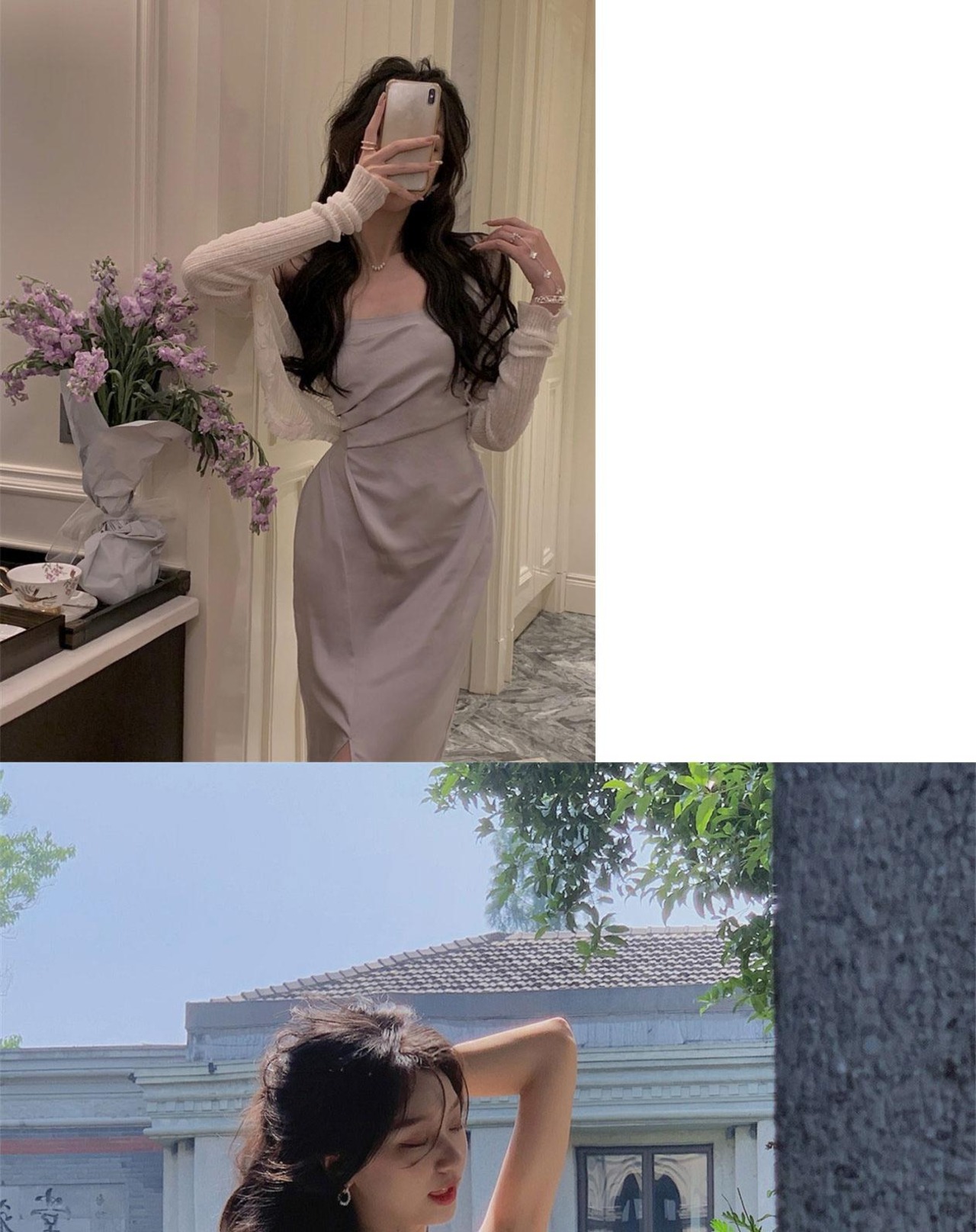 -品質の優しい風サスペンダードレスは薄くて背の高い夏の自己栽培プリーツスリットシックなユニークな気質ドレスです サマー 夏物 yingd77439381970