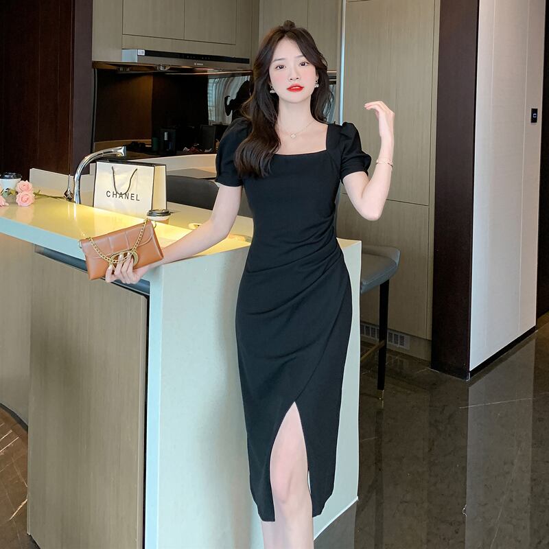シックなニッチなユニークなスカートYujieライトおなじみのスタイルウエストパフスリーブプリーツスプリットドレス夏のハイエンドセンス サマー 夏物 yingd81389618068