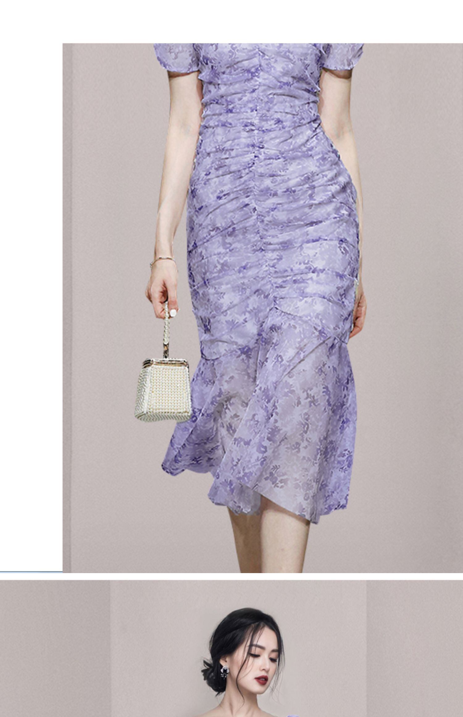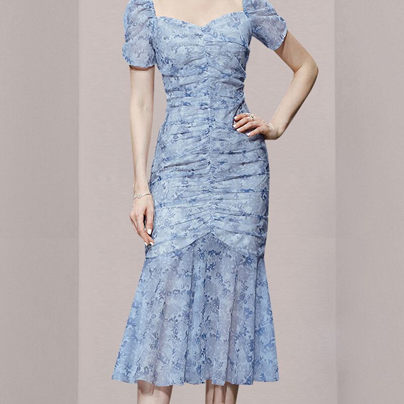 2022年春の新しい女性のフレンチシフォンフローラルドレスデザインプリーツパフスリーブフィッシュテールロングスカート スプリング 春物 花柄 yingd2351471961