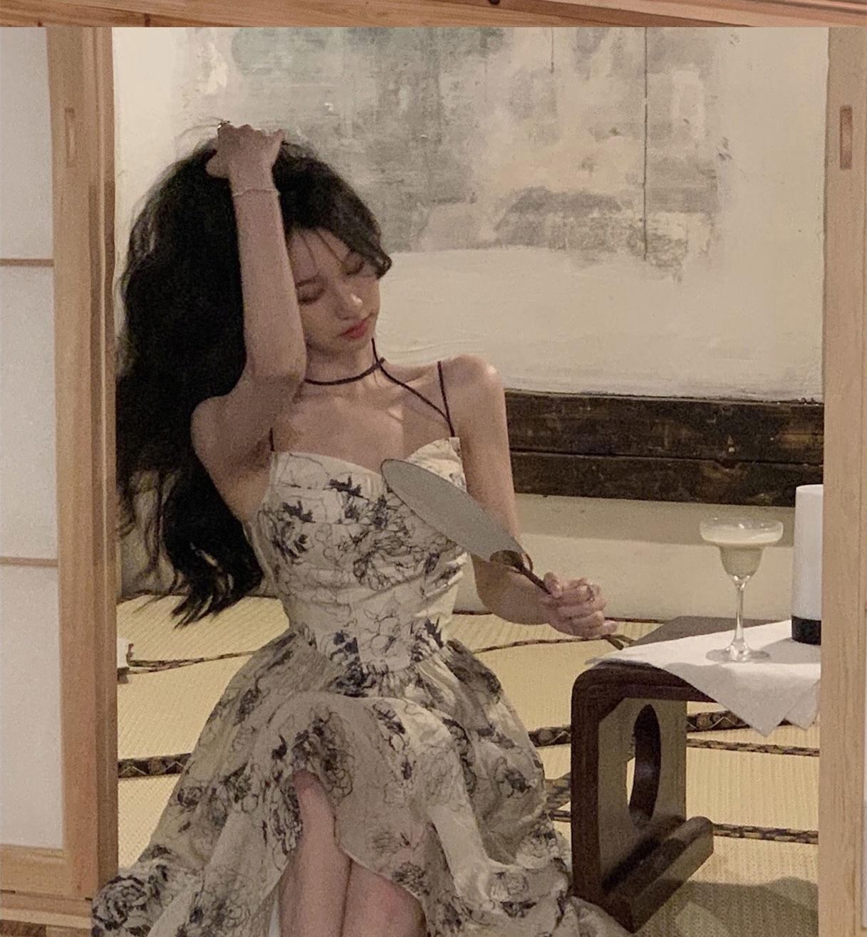 シックで美しいニッチなユニークなスカートコールドハイエンドプリントサスペンダードレス気質セレブニュースタイル yingd90198020045
