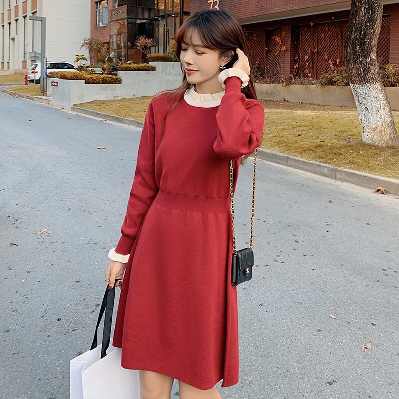 コート、冬のスカート、ボトミングセータースカート、女性の秋と冬、ウエスト、痩身、気質、年齢を減らすニットドレスと冬のスカート オータム 秋物 ウィンター 冬物 yingd15006850147