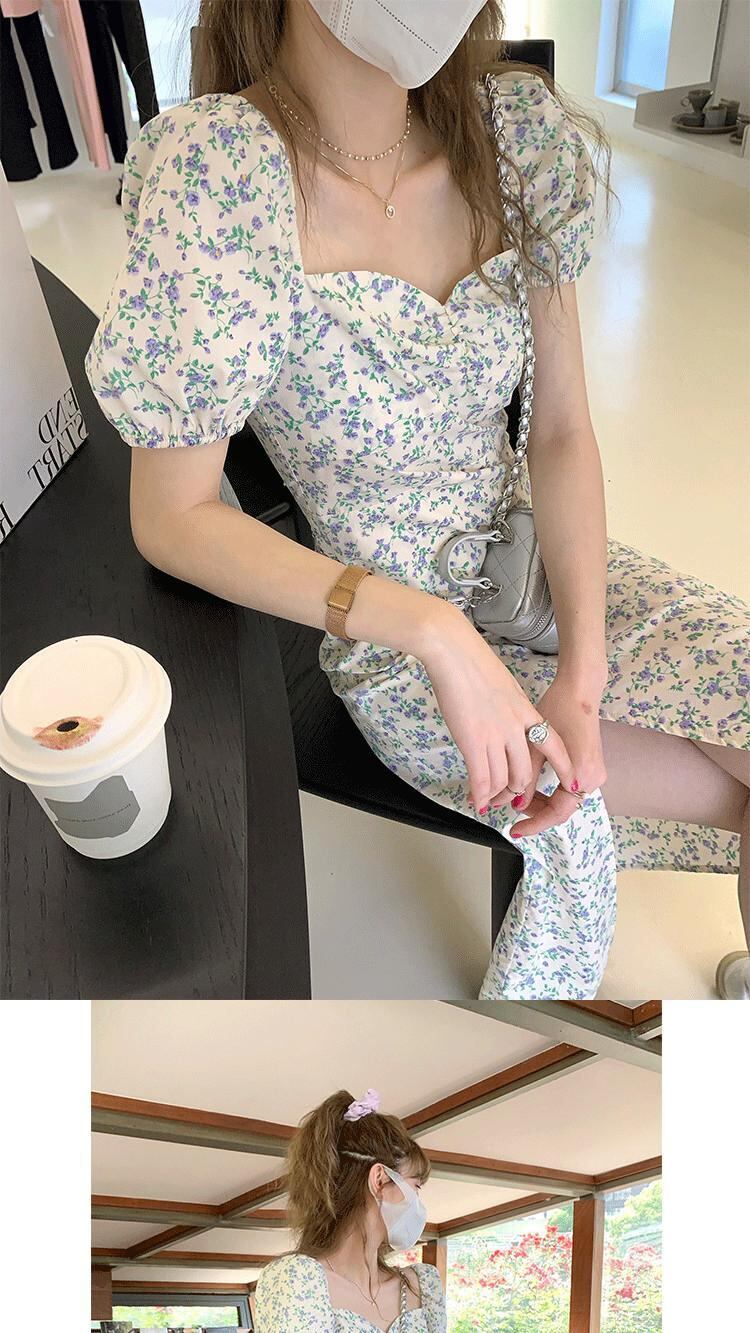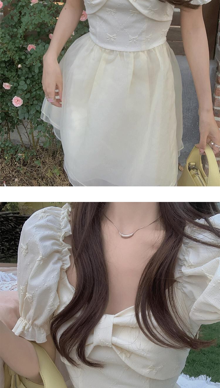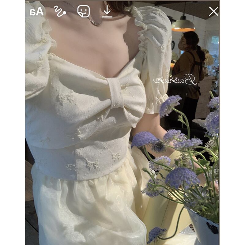 ボウノットパフスリーブドレス2022新しい女性の優しい風のウエストは細くて短いaラインのふくらんでいる妖精のスカートです ショート yingd84860382691