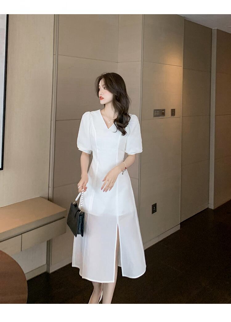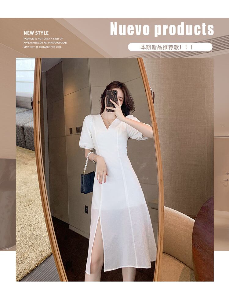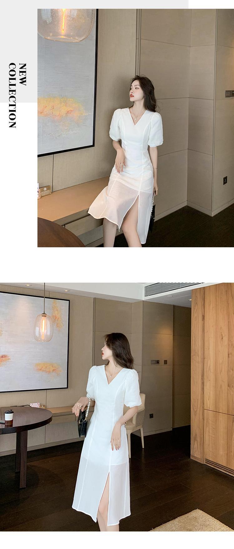 フランスの初恋スカートレトロ優しい風ウエストショー薄い気質の女神ファンセクシーなスプリットホワイトドレス夏 サマー 夏物 yingd77873873826