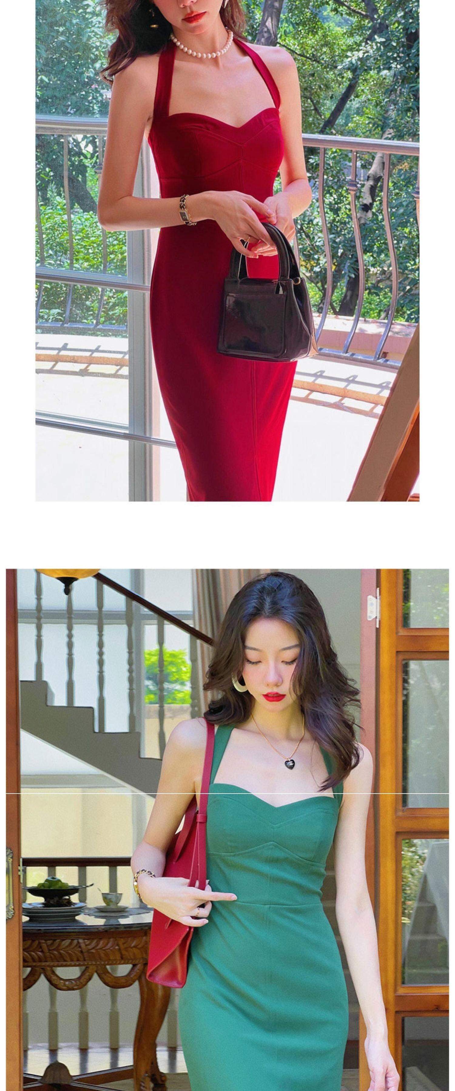 香港スタイルのレトロシックなスカートロイヤルシスターライトおなじみのスタイルハイエンドセンスのウエストと薄い気質のハンギングネックドレス女性の夏 サマー 夏物 yingd38583453583