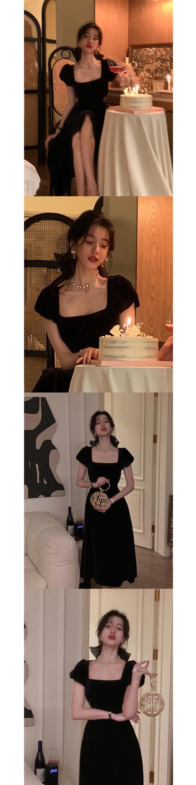 フランスのレトロなヘップバーンスタイルのスクエアネックパフスリーブロングドレスは、薄くて背の高い夏のハイエンドの軽い高級ドレスの夏の女性です サマー 夏物 スクウェア yingd33781521215