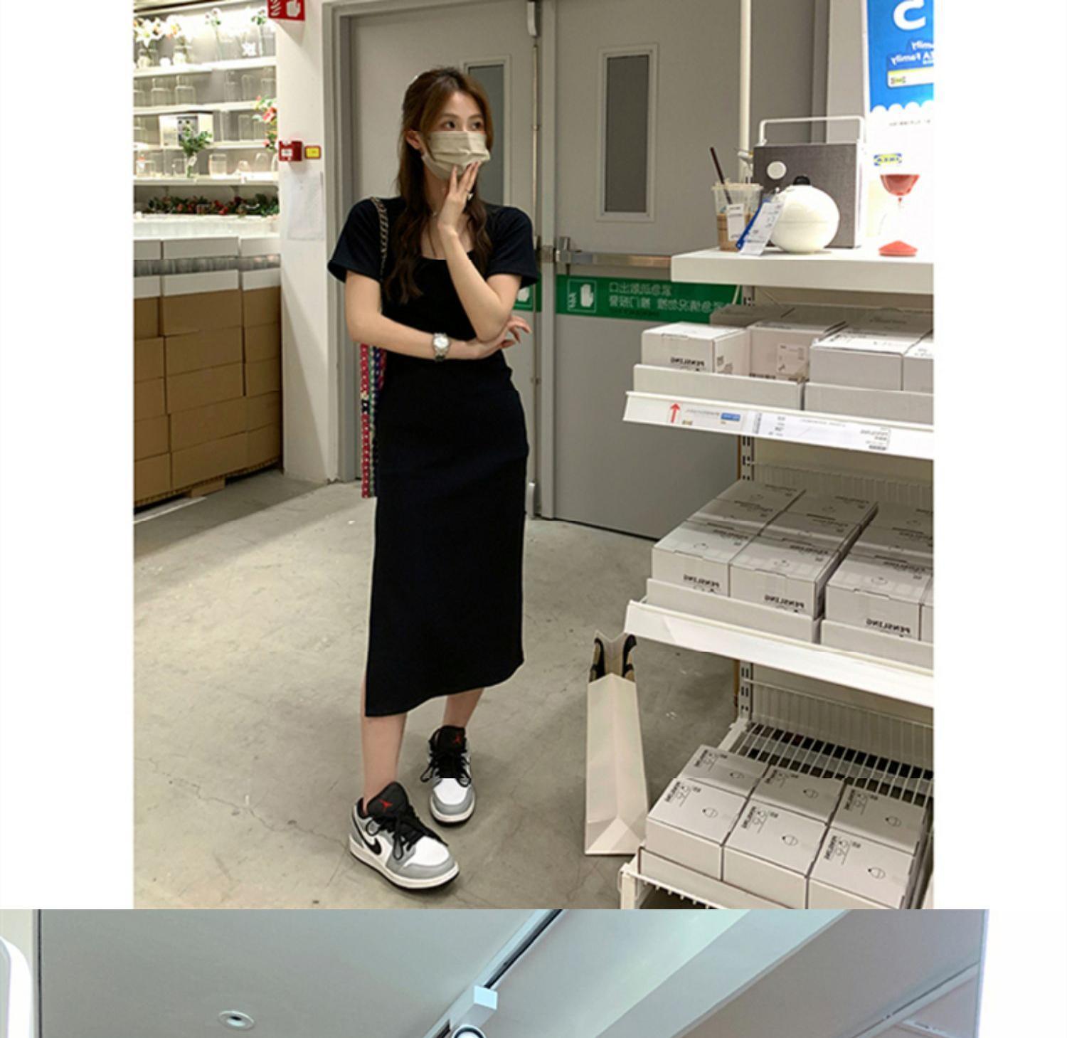 シック、見事な、白、ハイエンド、スクエアネック、スプリットレングスのドレス、薄くて背の高い、夏のスリム、見事で美しいドレスの女性 ホワイト サマー 夏物 スクウェア yingd28367775365