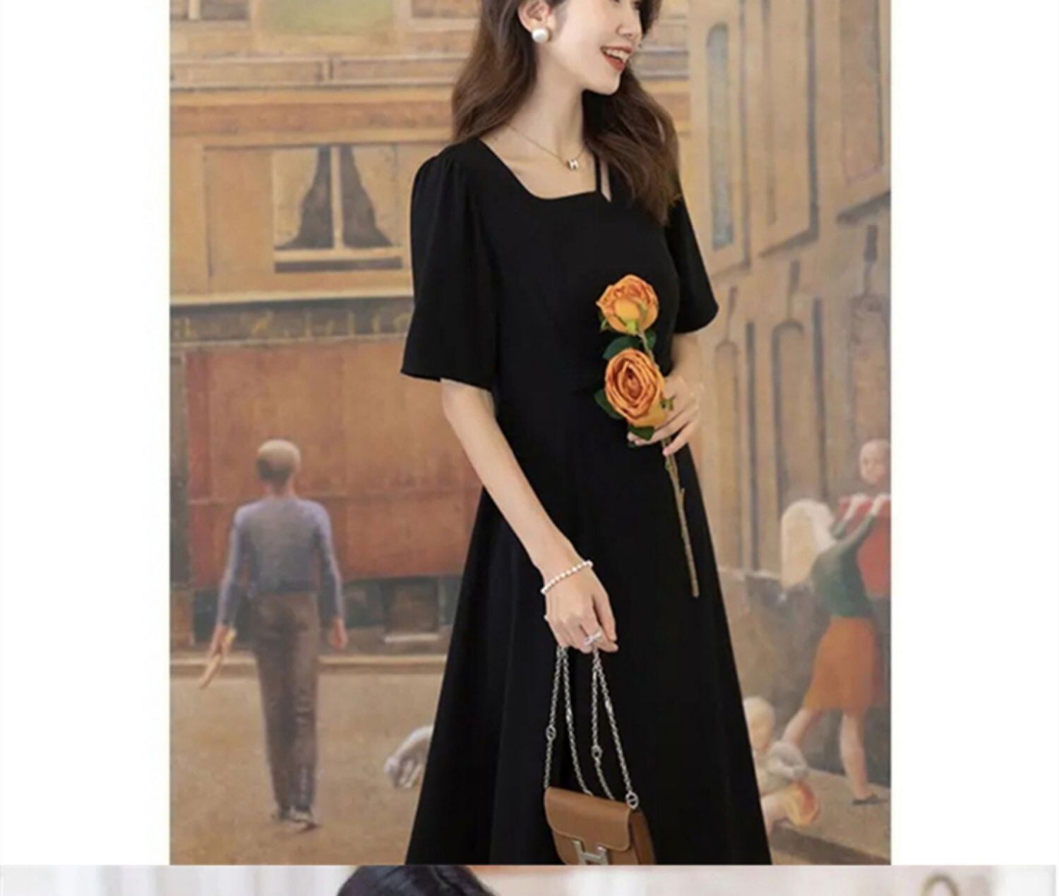 フランスのレトロなヘップバーンスタイルのハイエンドなスクエアネックのスリットロングスカートは、細くて背が高く、夏の甘くてスパイシーなシックな見事なドレスです 大人ガーリー スウィート キュート カジュアル サマー 夏物 スクウェア yingd99325396707