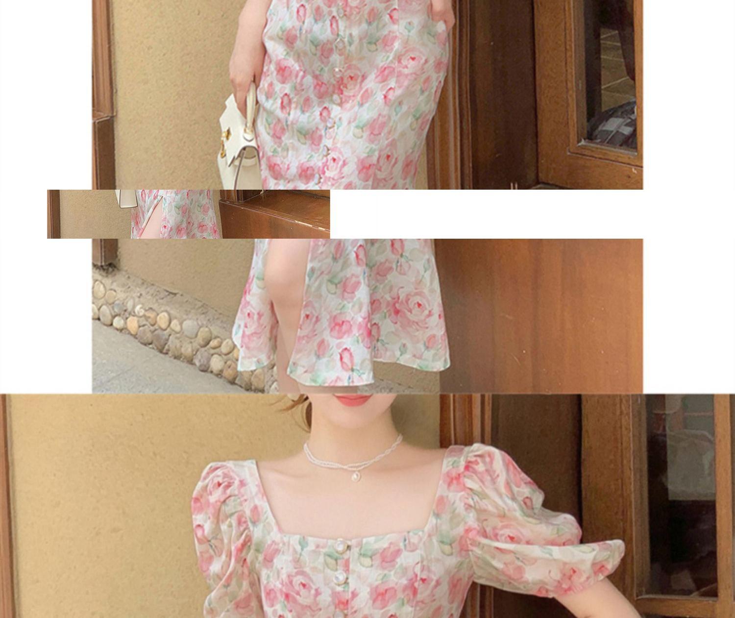 ティーブレイクの美しいドレス、ハイエンドの気質、有名人の女神、ファン、ハイエンドのパフスリーブ、ピンク、白、花柄のドレス ホワイト yingd72666803751