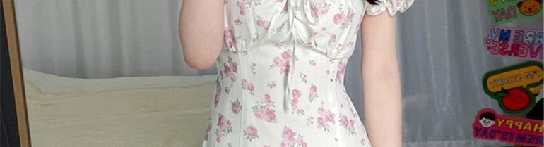 フレンチティーブレイクバブルスリーブ花柄ドレスは、薄くて背の高い夏のデザインニッチ見事な美しいドレス夏の女性 サマー 夏物 yingd36227093221
