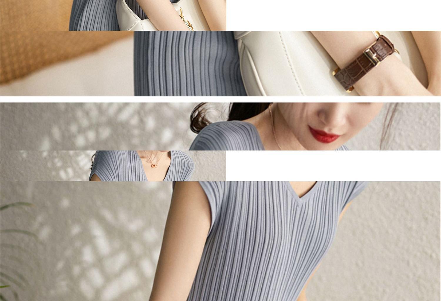 フランスのシックな見事なハイエンド スカート寒風ピット ストリップ V ネック ニット巨大な薄いドレス夏の女性 サマー 夏物 Vネック yingd35059100468