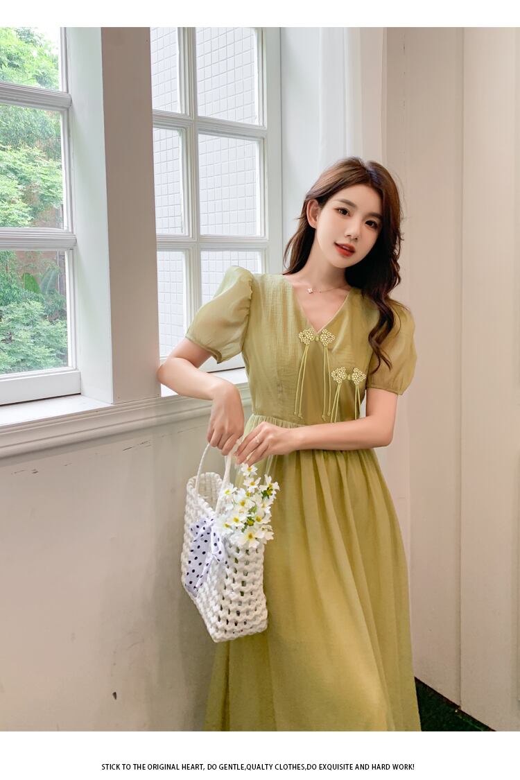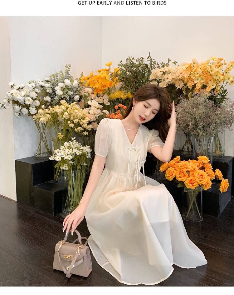 フランスのハイエンドな乳白色の甘いスカートはウエストが細く、気質は優しくて妖精のようなデザインで、新しいチャイナドレスの女性です。 大人ガーリー スウィート キュート カジュアル yingd84598249430