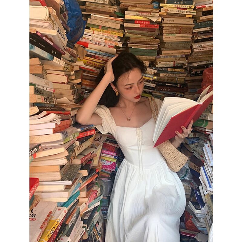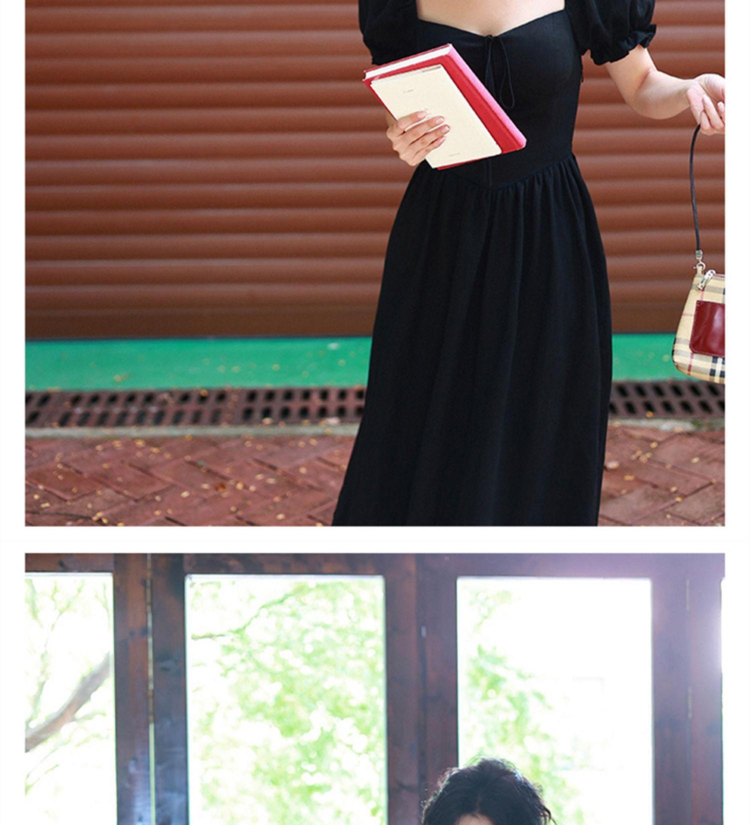 フランスのレトロな四角い首のパフスリーブのロングドレスは細くて背が高く、夏のウエストは見事で美しい洋ナシの形をしています サマー 夏物 スクウェア yingd58295622664