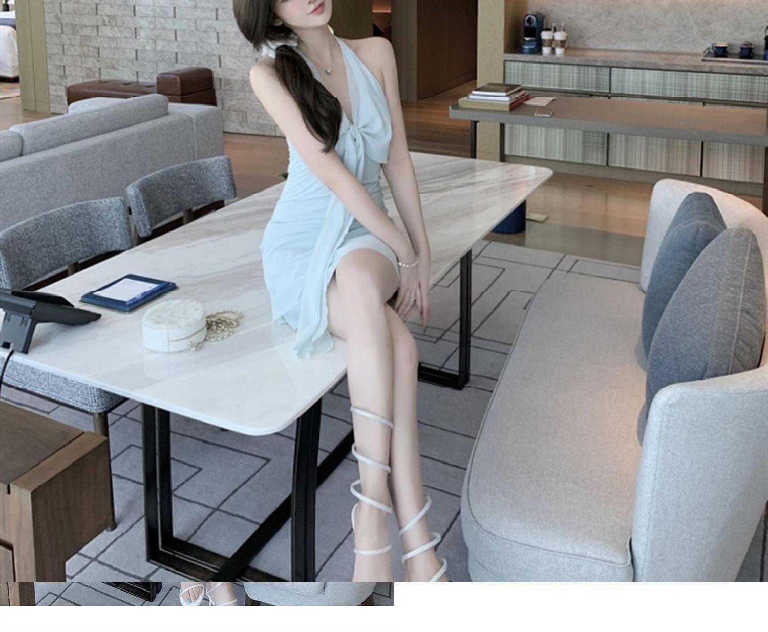 フランスの優しいスタイルの純粋な欲望の吊り下げネックスカートロイヤルシスターライトおなじみのスタイルのハイエンドシフォン吊り下げネックの白いドレス2022 ホワイト ピュア yingd88489863240