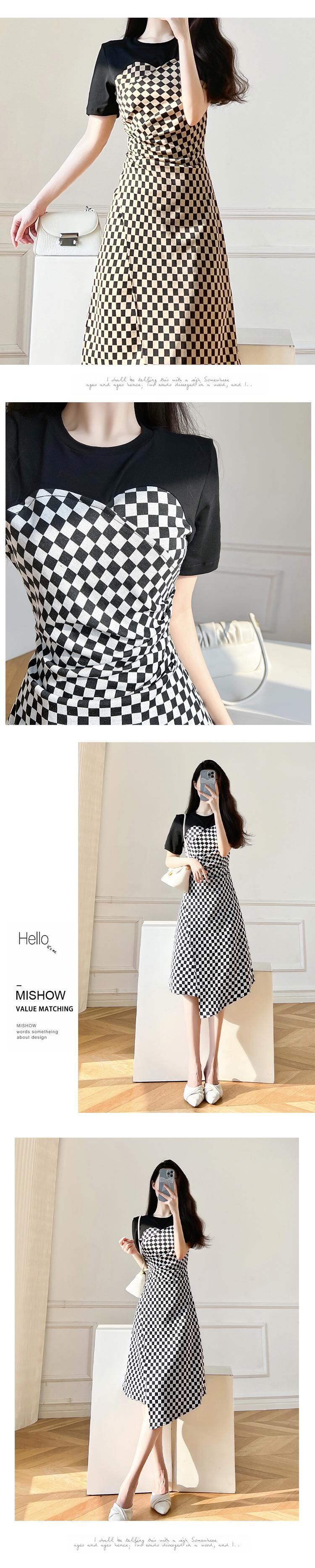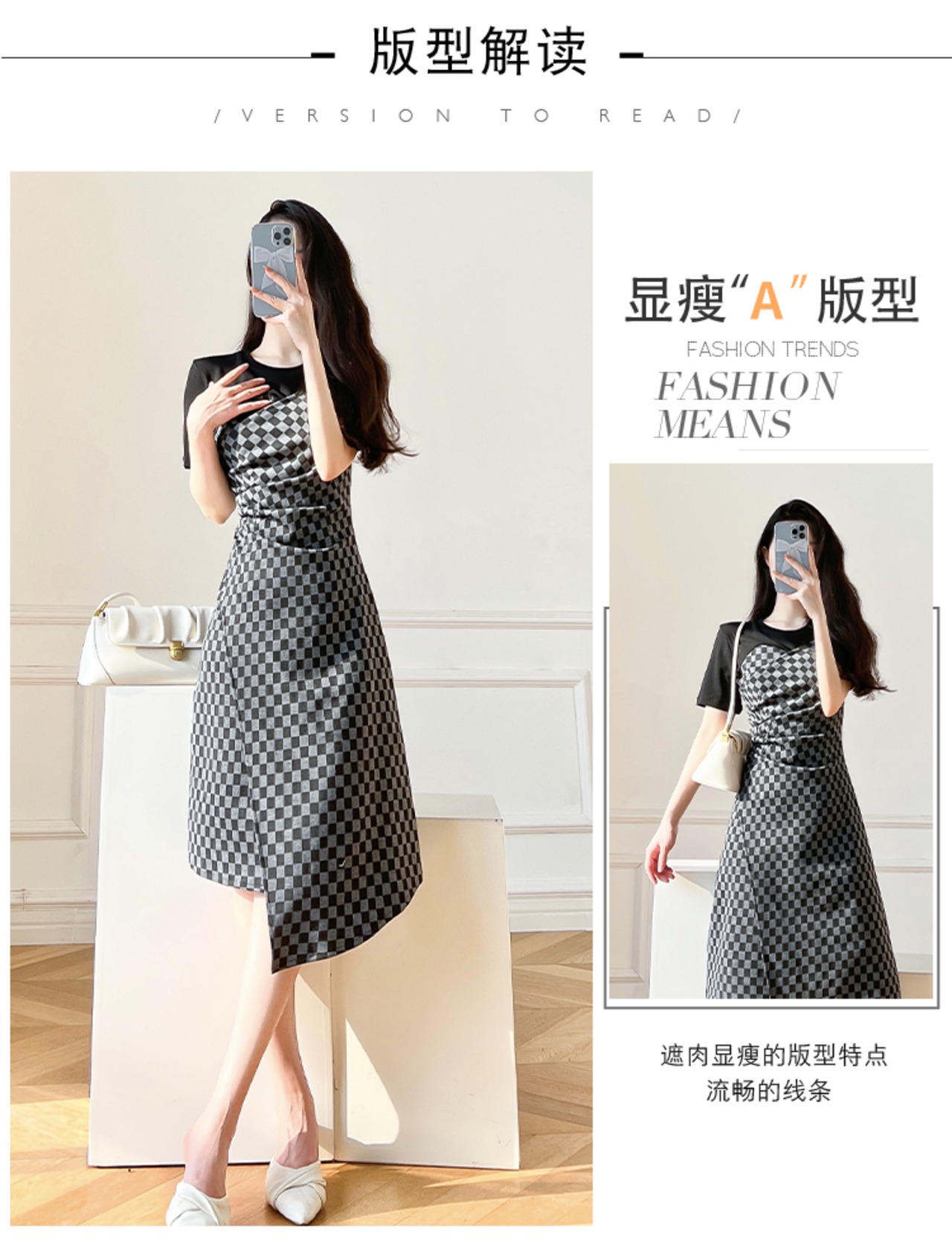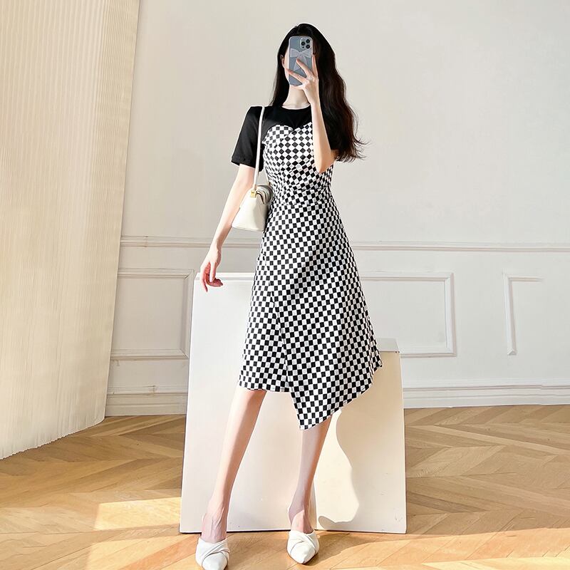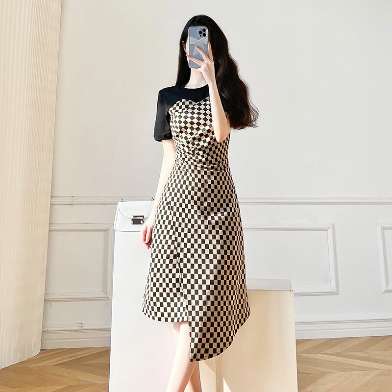 シックでユニークなスカートロイヤルシスターライトおなじみのスタイルデザインニッチステッチ不規則な格子縞のドレス夏のハイエンド感 サマー 夏物 yingd6645751200
