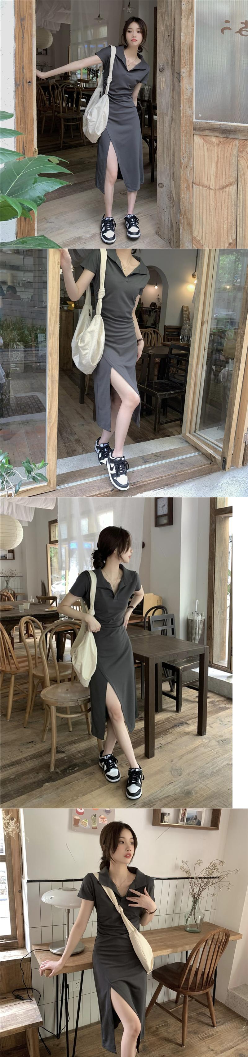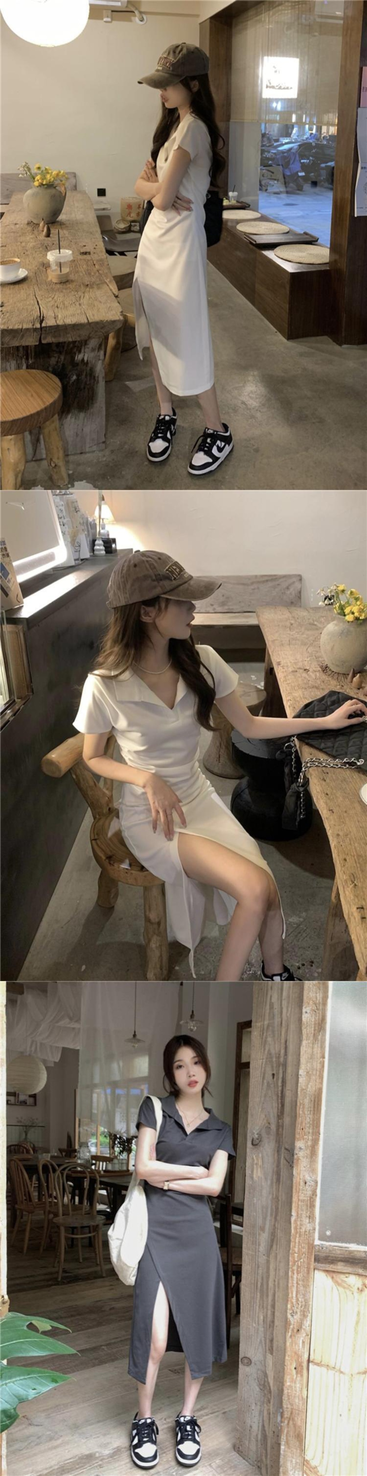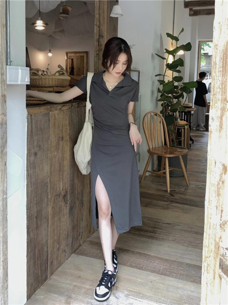 甘くてスパイシーなシックな見事なポロ ドレス夏の女性のスリム フィットと薄い気質不規則なスリット バッグ ヒップ ロング スカート 大人ガーリー スウィート キュート カジュアル サマー 夏物 yingd65398827538