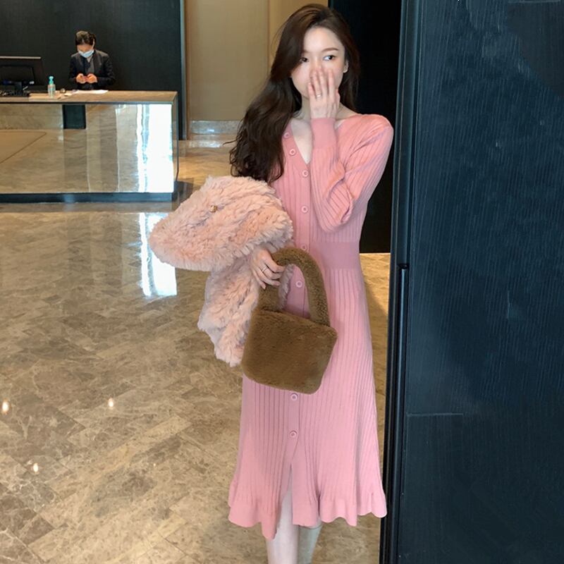 秋と冬のスカート、高品質のロングスカート、スリムフィット、スリムな気質、ロイヤルシスターファンの婦人服、セクシーなVネックのニットドレスの女性 オータム 秋物 ウィンター 冬物 yingd69110155381