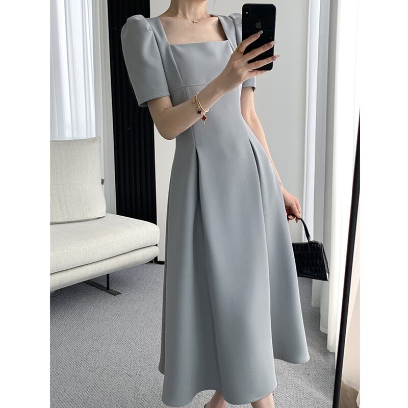 フランスのレトロなスクエアネックのパフスリーブのロングドレスは、薄くて背が高く、Xia Yujieの軽くて馴染みのあるスタイルのハイエンドドレスの夏の女性です。 サマー 夏物 スクウェア yingd88992921686