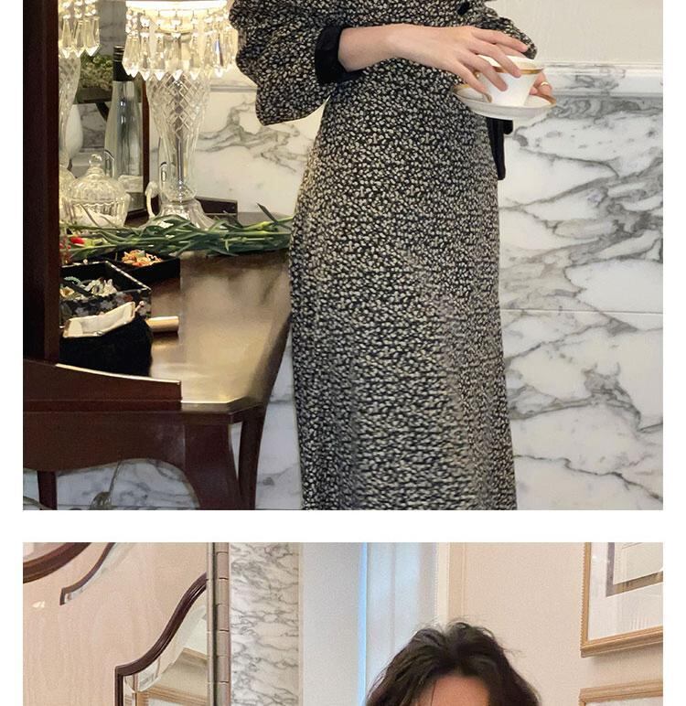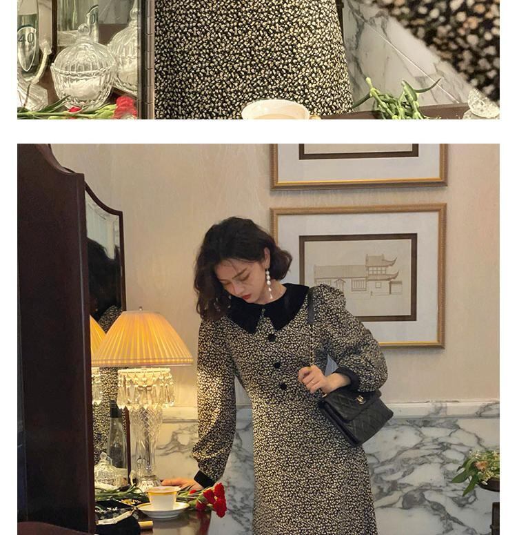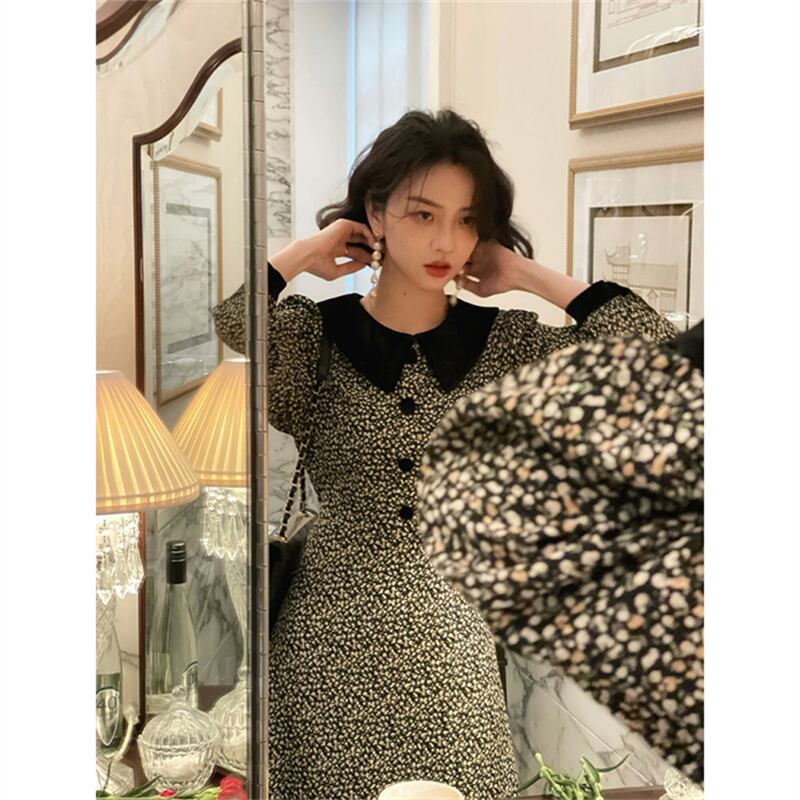 フランスのレトロなシックなハイエンド ライト ラグジュアリー ウエスト ウエスト 薄い気質の女神ファン パフ スリーブ花柄ドレス秋と冬 オータム 秋物 ウィンター 冬物 yingd92030203937