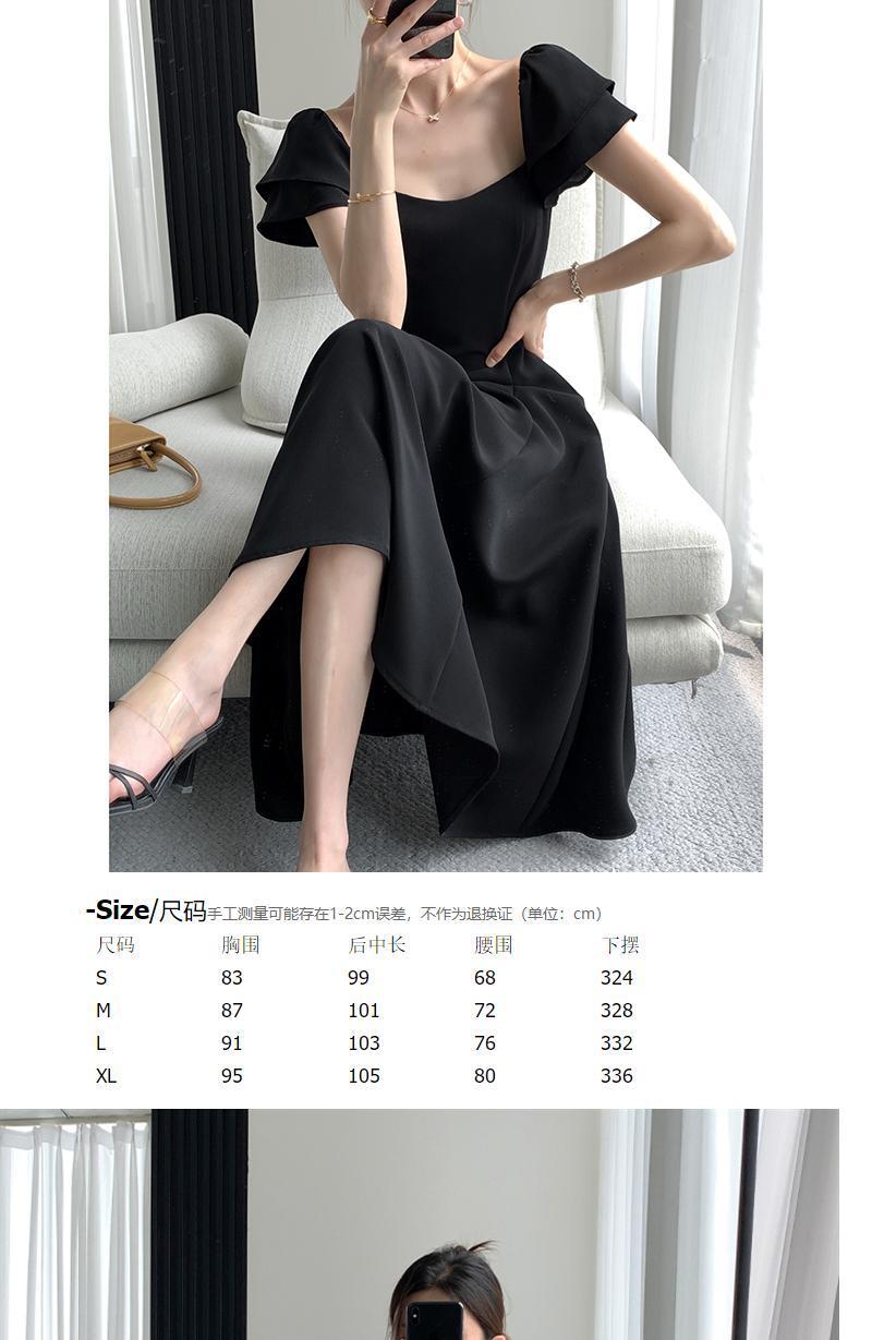 フランスのレトロなヘップバーンスタイルのスクエアネックのロングドレスは、薄くて背が高いXia Yujieの軽いおなじみのスタイルの雰囲気のドレスの夏の女性です サマー 夏物 スクウェア yingd70337371752