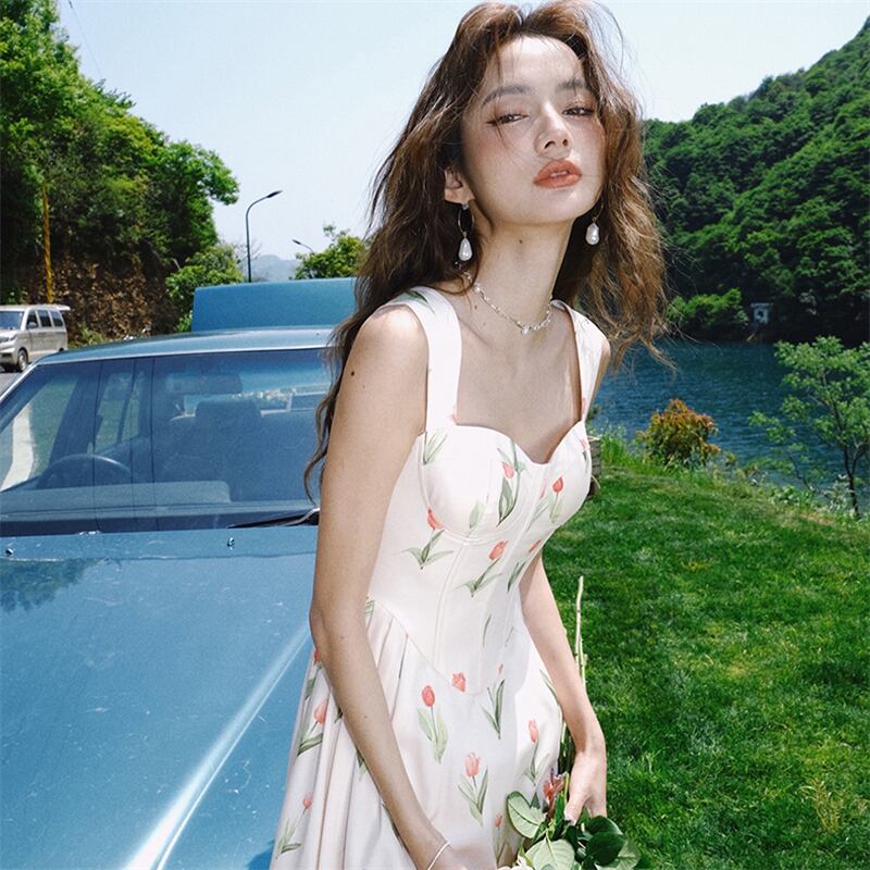 甘くてスパイシーなシックな見事な美しい花柄サスペンダー ドレス女性の夏のデザイン ニッチなハイエンド スカート冷たい風 大人ガーリー スウィート キュート カジュアル サマー 夏物 yingd83753541490