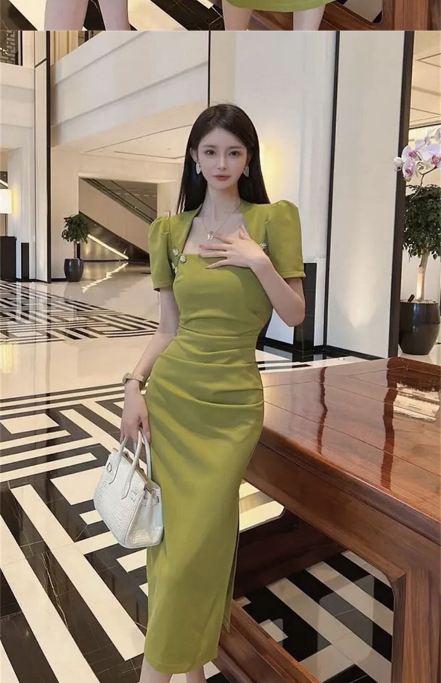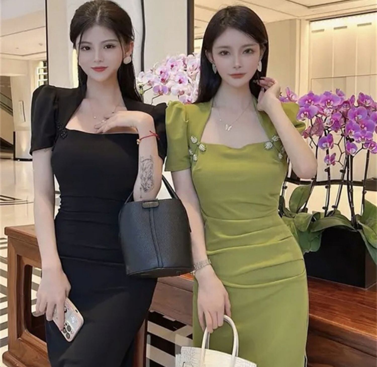 シックで美しいスカート、ロイヤルシスター、軽い、馴染み、冷たい、高級感、スクエアネック、ウエスト、巨大な薄いドレス、夏の女性 サマー 夏物 スクウェア yingd64361612227